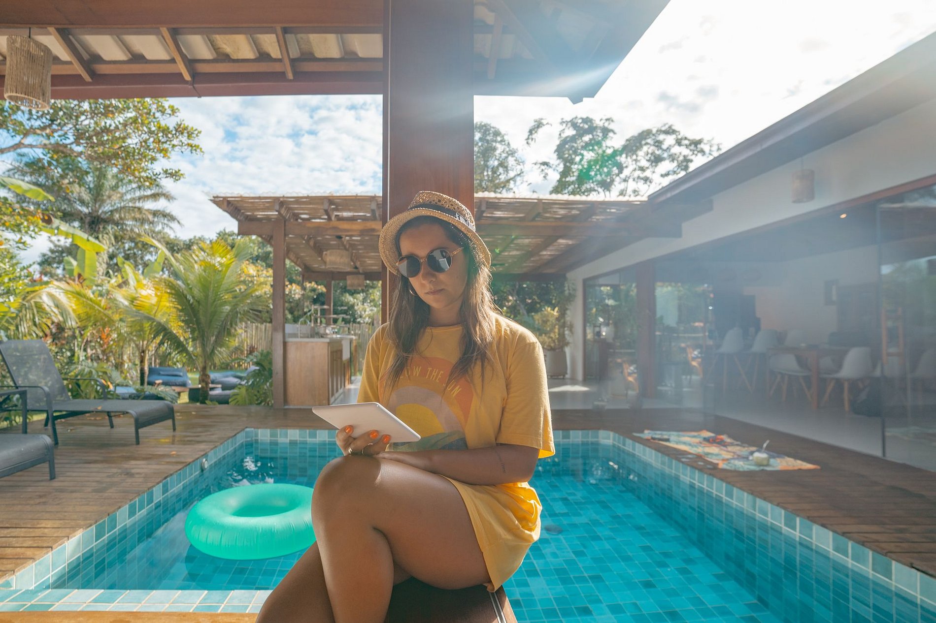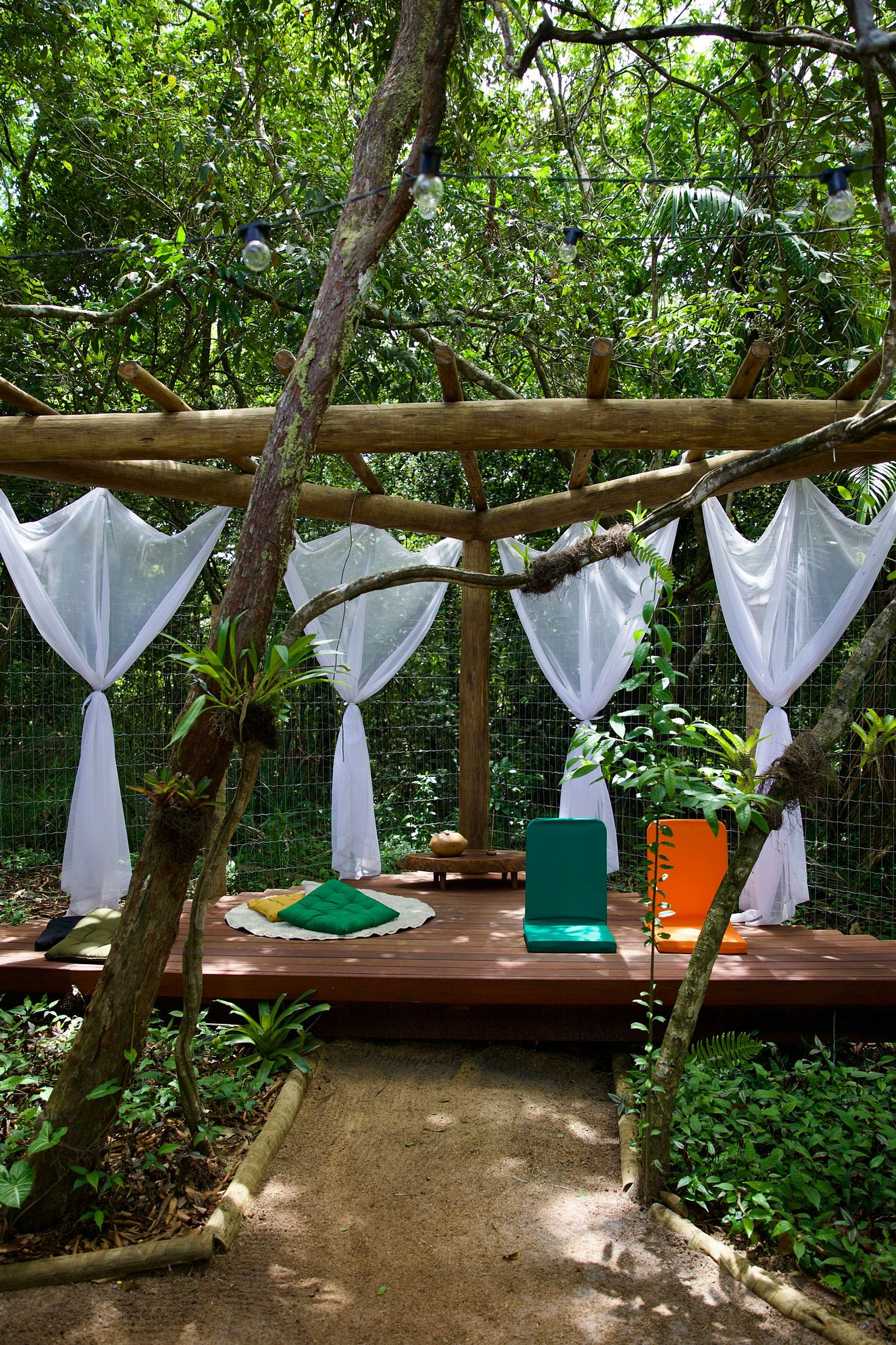O bangalô possui uma cama queen size e duas camas auxiliares, com capacidade para receber até 4 pessoas. Possui ainda mesa de trabalho com design ergonômico e cadeira Flexform, para seu home office. Além do conforto, esta suíte tem um charme especial por estar conectada diretamente com a piscina da casa.
