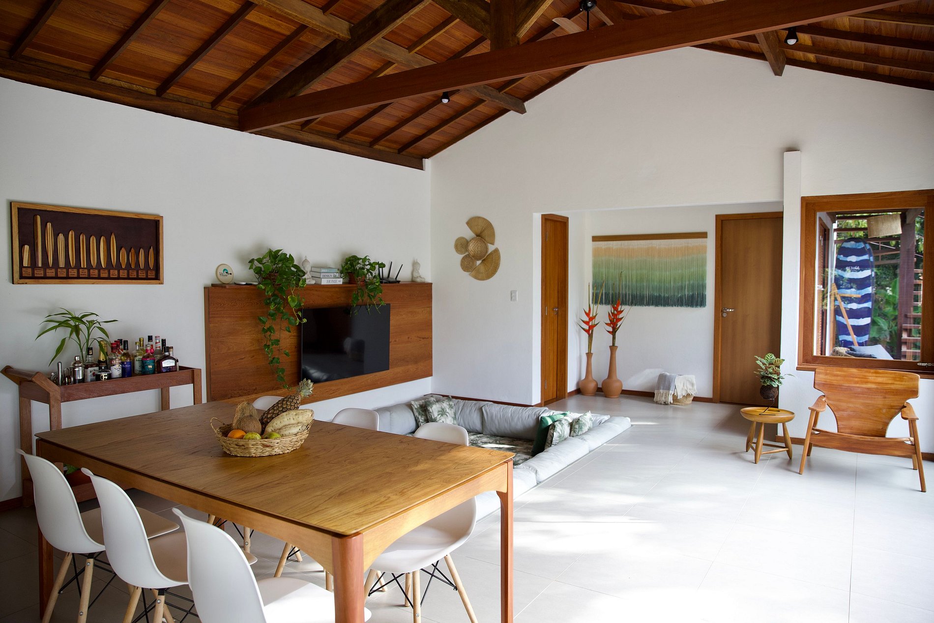 A Casa Nengueta - Algodões possui 4 suítes, sendo duas no andar térreo (um bangalô e outra integrada à área social interna da casa) e duas suítes no andar superior, e uma ampla área social interna e externa.