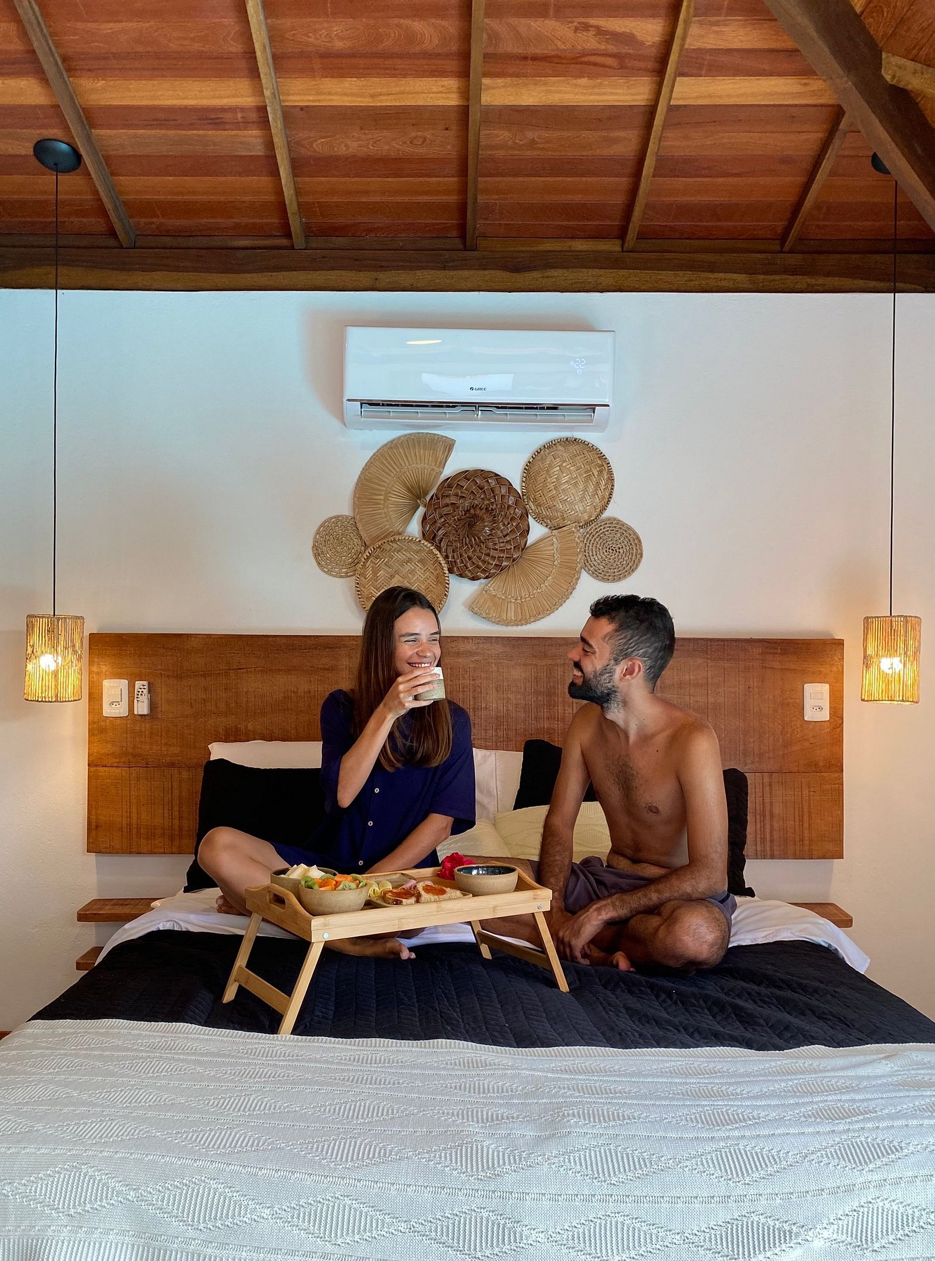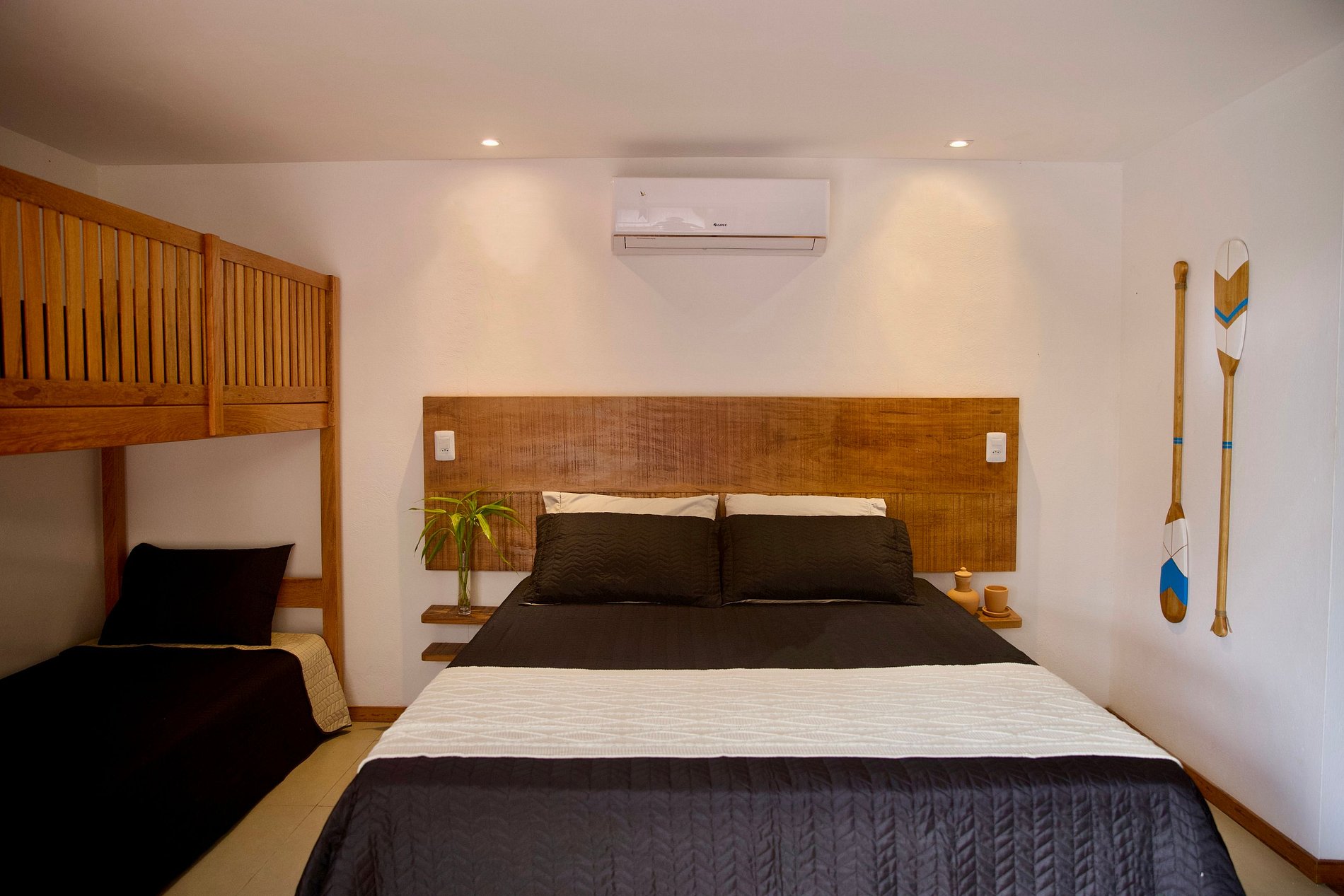 Todas as suítes dispõem de ar condicionado e ventilador de teto, decoração praiana, móveis desenhados sob medida para o espaço, suporte de malas/bagagens e camas com colchão de molas ensacadas Guldi e travesseiros anatômicos, a fim de proporcionar o máximo de bem-estar.