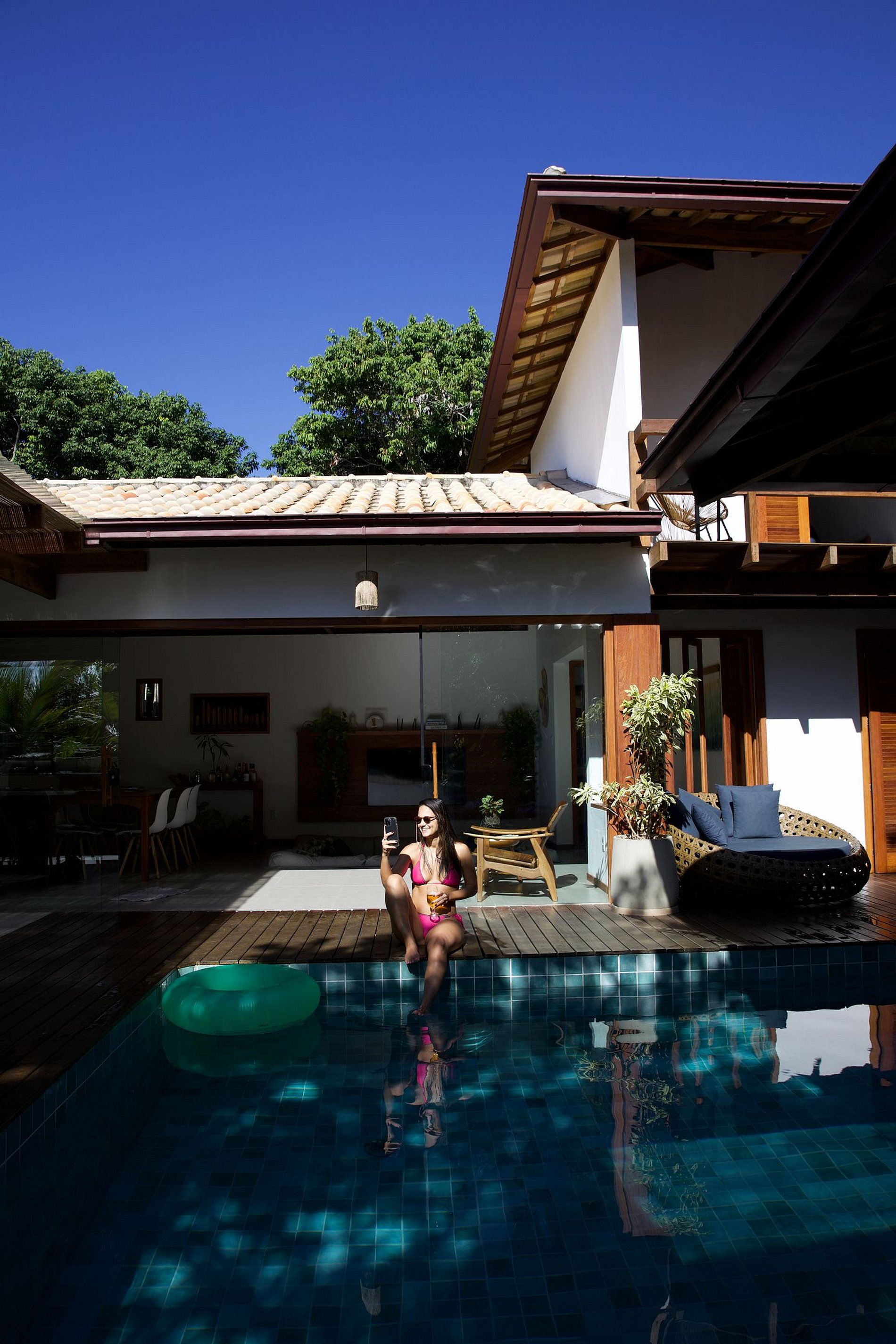 A apenas 250m da praia, conta com 4 suítes, piscina e uma ampla área de lazer em um terreno de 1.200m², acomodando até 12 pessoas. É perfeita para famílias e amigos que buscam descanso, diversão e conexão com a natureza.